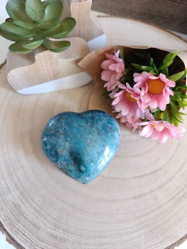 Galet Coeur APATITE BLEUE A 70mm