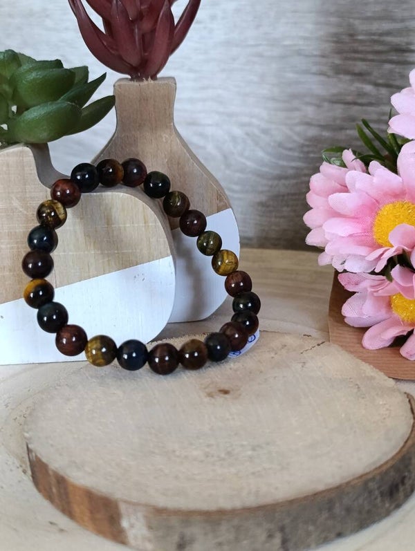 Bracelet élastique en perles naturelles d'Oeil de Tigre, Taureau, Faucon